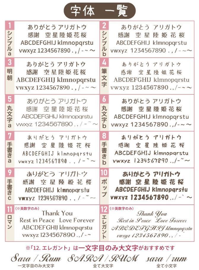 ※文字数の制限はございませんが、多くなるほどに文字が小さくなります。