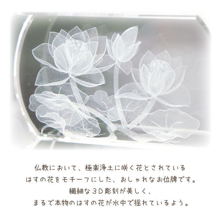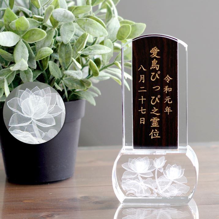 心に寄り添う特別なお位牌、お位牌 蓮の花 黒檀です。この商品は、透明感のある美しいお位牌です。重厚感あるガラス製のクリアなペット位牌。