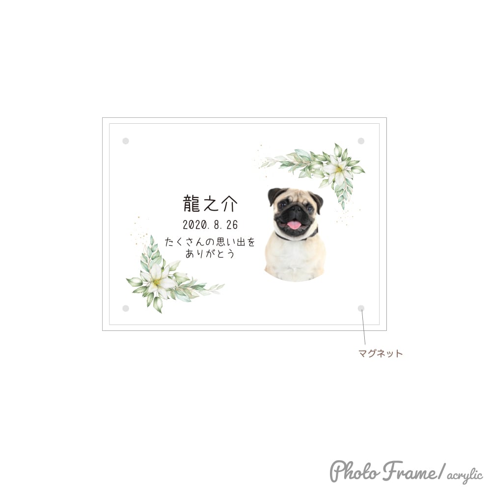 愛するペットとの素敵な思い出を飾るために作られたアクリル写真立て。いつでも手元で楽しめる魅力的なアイテムです。