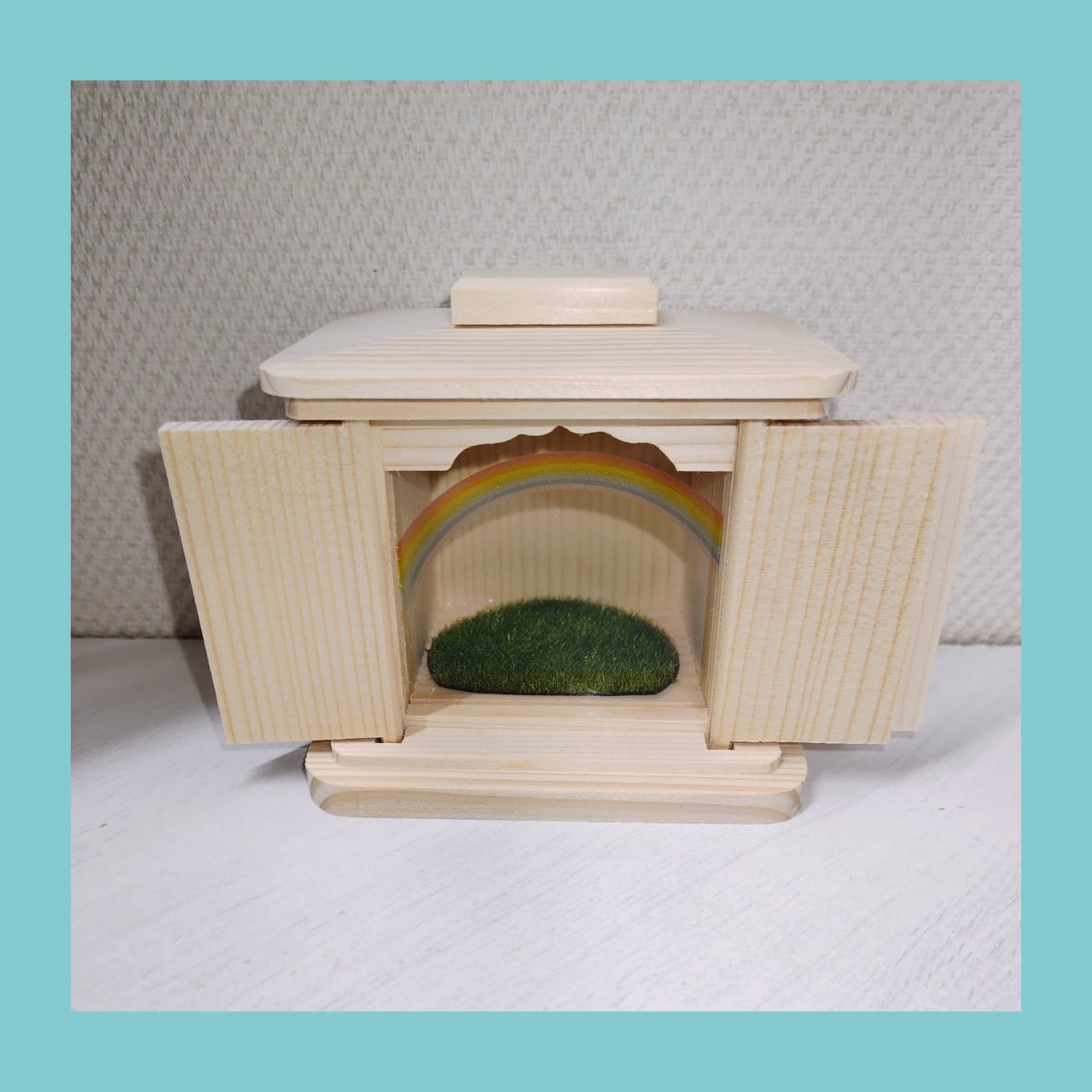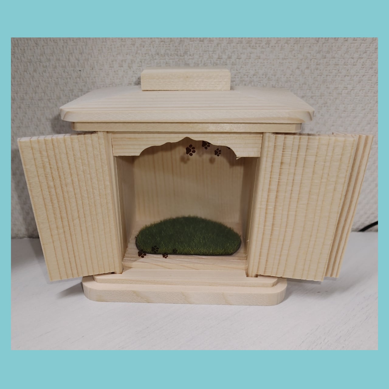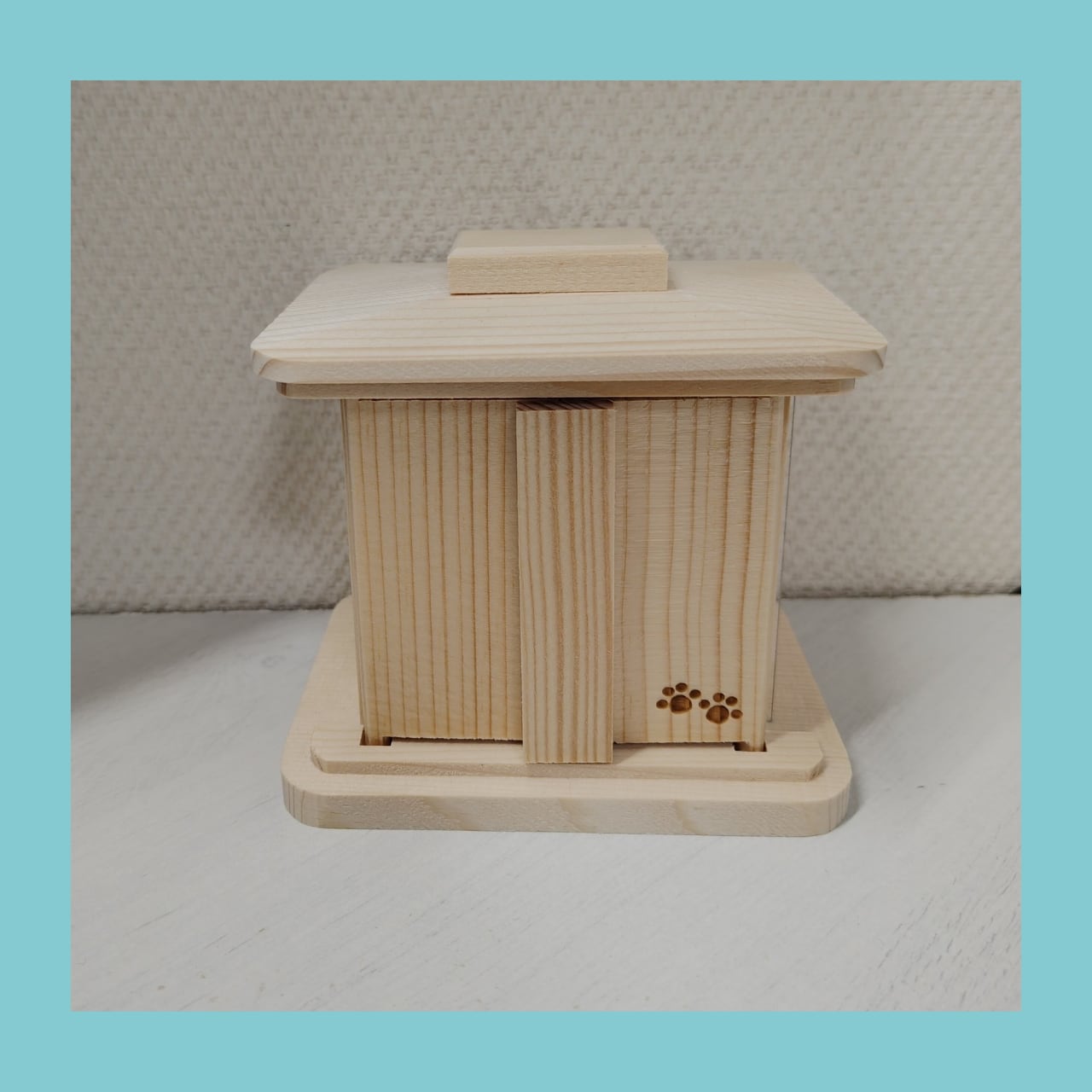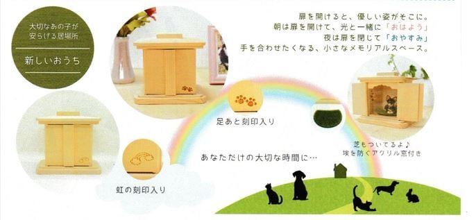 「あの子の新しいお家」は、大切なペットのために作られた、安心感と癒やしを提供するアイテムです。大切なあの子の分骨や形見がよく見える仕様になっており、温かみを感じられます。