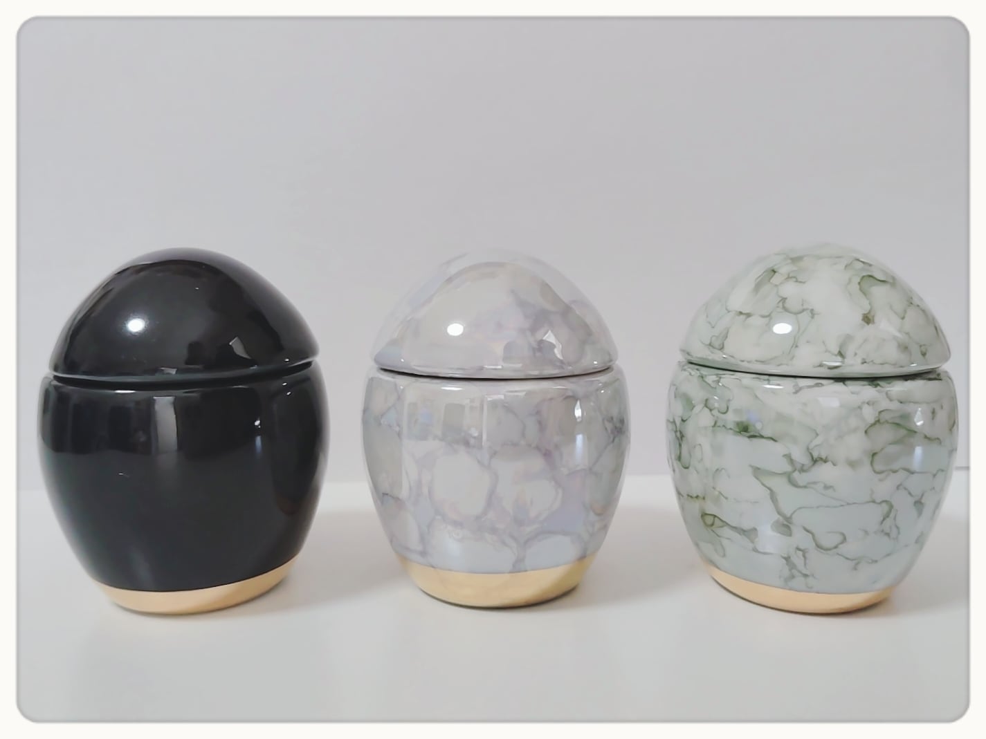 あなたの家族になったペットへの感謝の気持ちを込めて、この卵型ミニ骨壺で愛らしい形見として大切に保管してください。